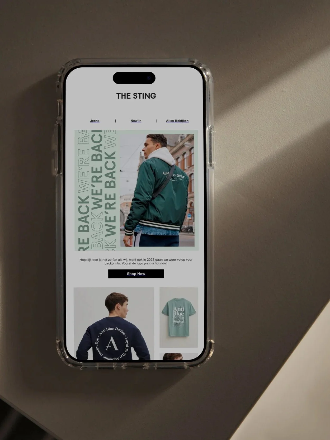 Ter vervanging van een vaste medewerker verzorgde ik tijdelijk de mailflows voor The Sting, het Nederlandse kledingmerk. Het was een mooie kans om me volledig onder te dompelen in hun merkcommunicatie en bestaande campagnes verder uit te bouwen. Zo kon ik bijdragen aan content die klanten aanspreekt en de stijl van het merk versterkt.